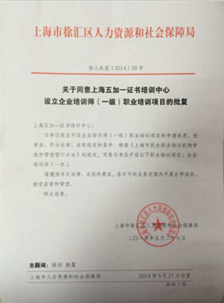 2014年5月上海亿学网络科技有限公司被上海市人保局批准成为唯一具备高级企业培训师(一级)培训资质的机构。